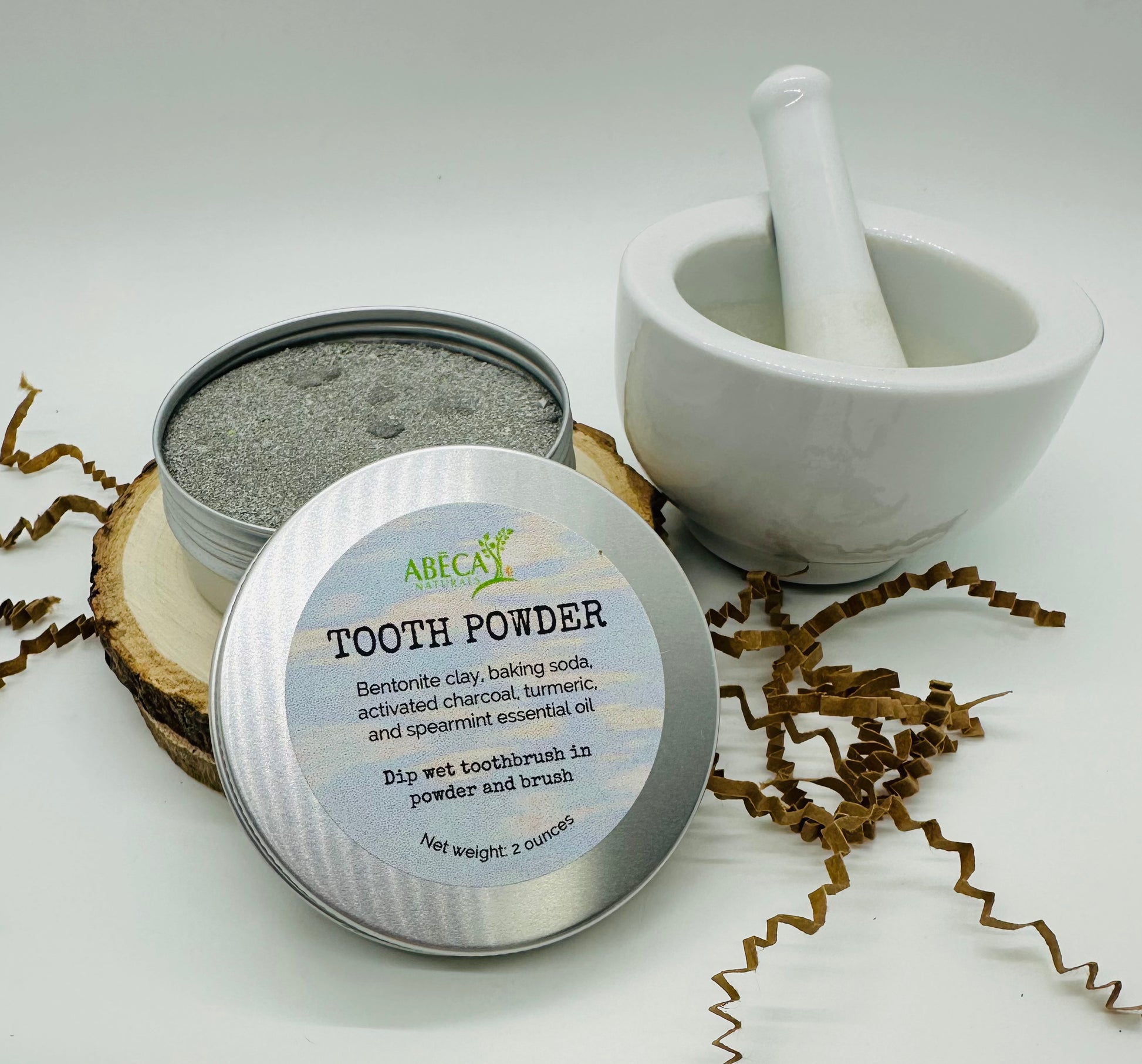 Ingredients: Bentonite Clay, Baking Soda, Activated Charcoal, Turmeric & Spearmint EO