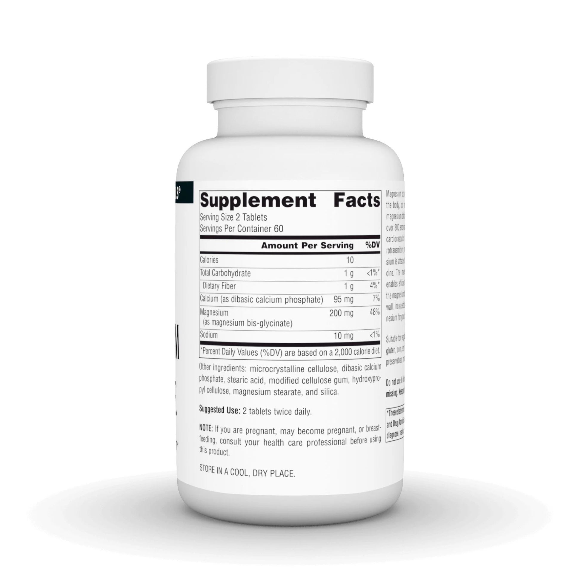 Ingredients: Calcium (as dibasic calcium phosphate) & Magnesium (as magnesium bis-glycinate)