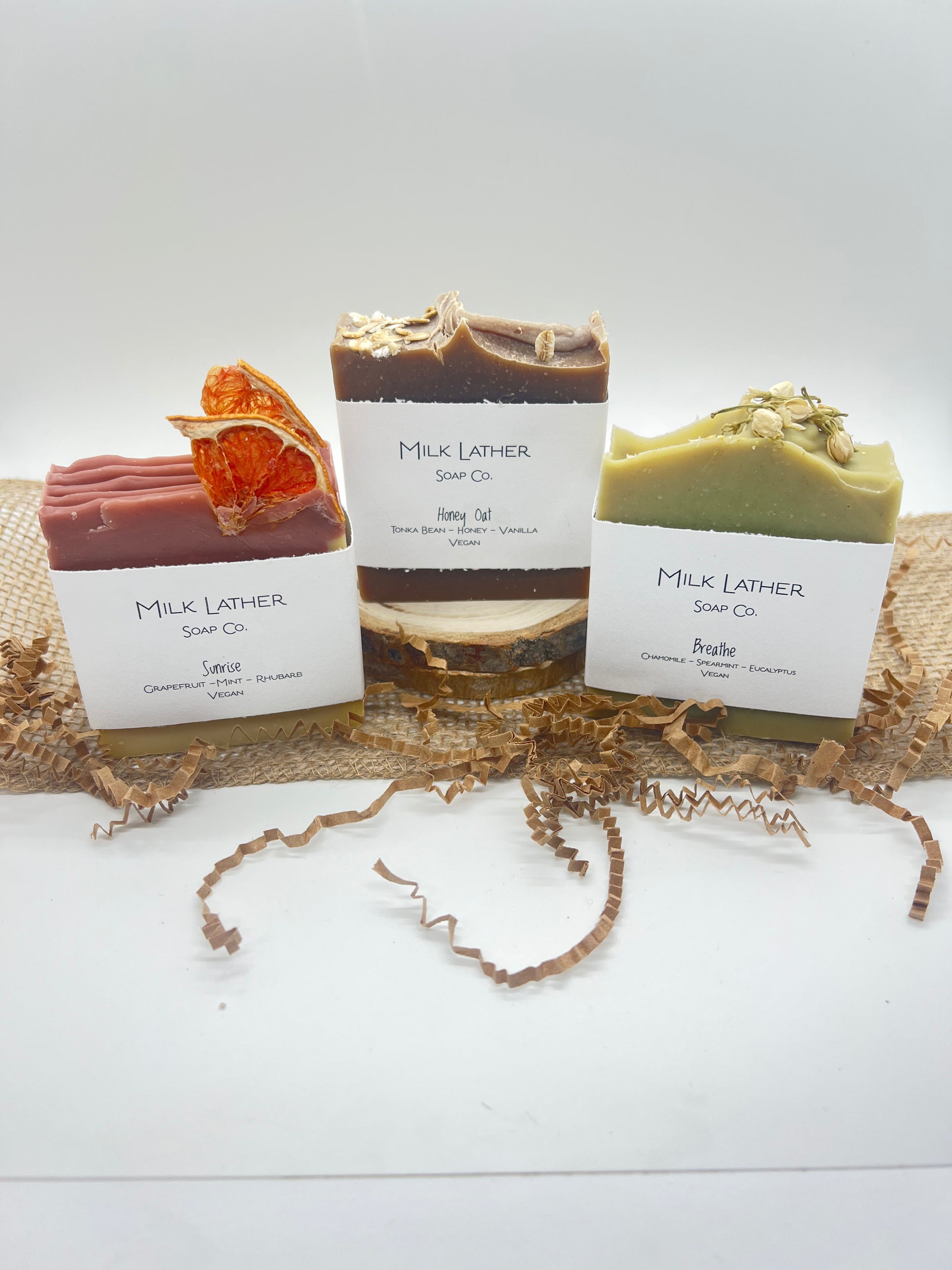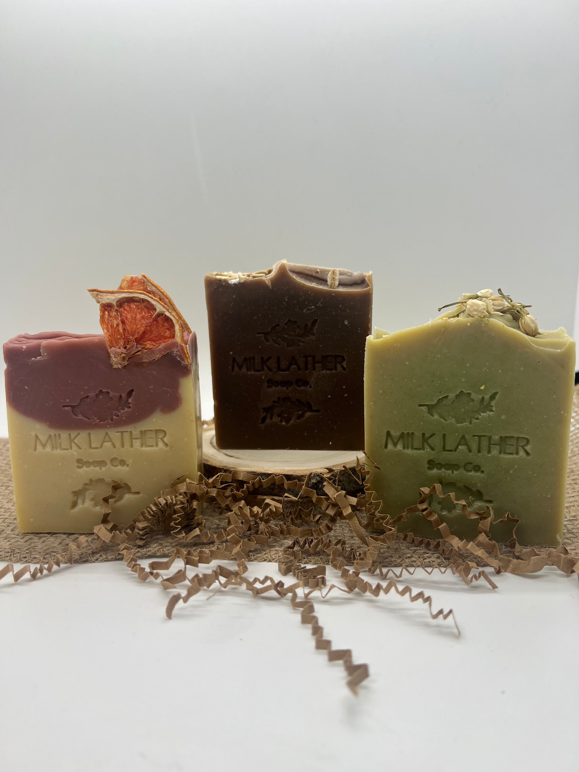 Milk Lather Co. is a local small batch soap company that formulates vegan soaps using the cleanest ingredients that are 100% free of artificial dyes and fragrances. Milk Lather's vegan soaps are scented using only essential oils and dried botanicals resulting in a naturally colored, pure scented soap that moisturizes and cleans the skin with the highest quality ingredients.